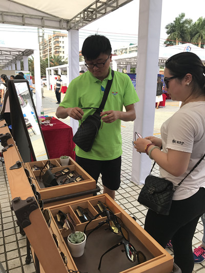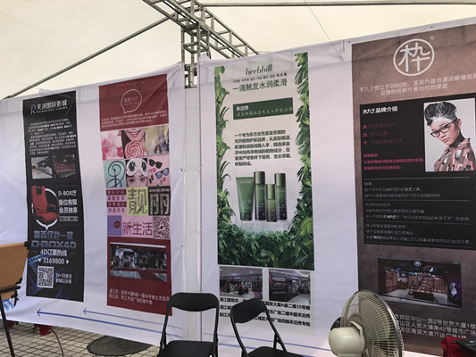 (天潤(rùn)創(chuàng)業(yè)孵化基地孵化項(xiàng)目“木九十”眼鏡、“禾泊秀”護(hù)膚品專柜人員認(rèn)真向市民介紹產(chǎn)品)