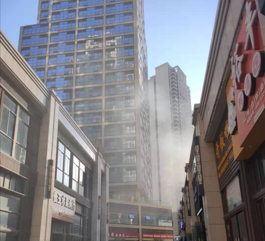 16:00點,消防演習(xí)正式開始,此次演習(xí)分別在37層、113層平臺外各設(shè)立一個模擬發(fā)生火災(zāi)險情場景。